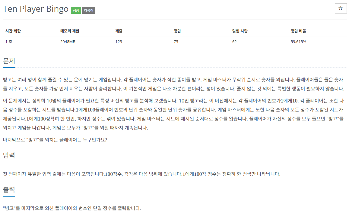 // 100 개의 숫자가 불리므로 각 인원에 맞는 숫자 확인