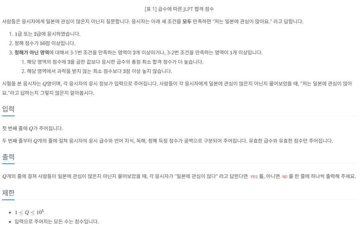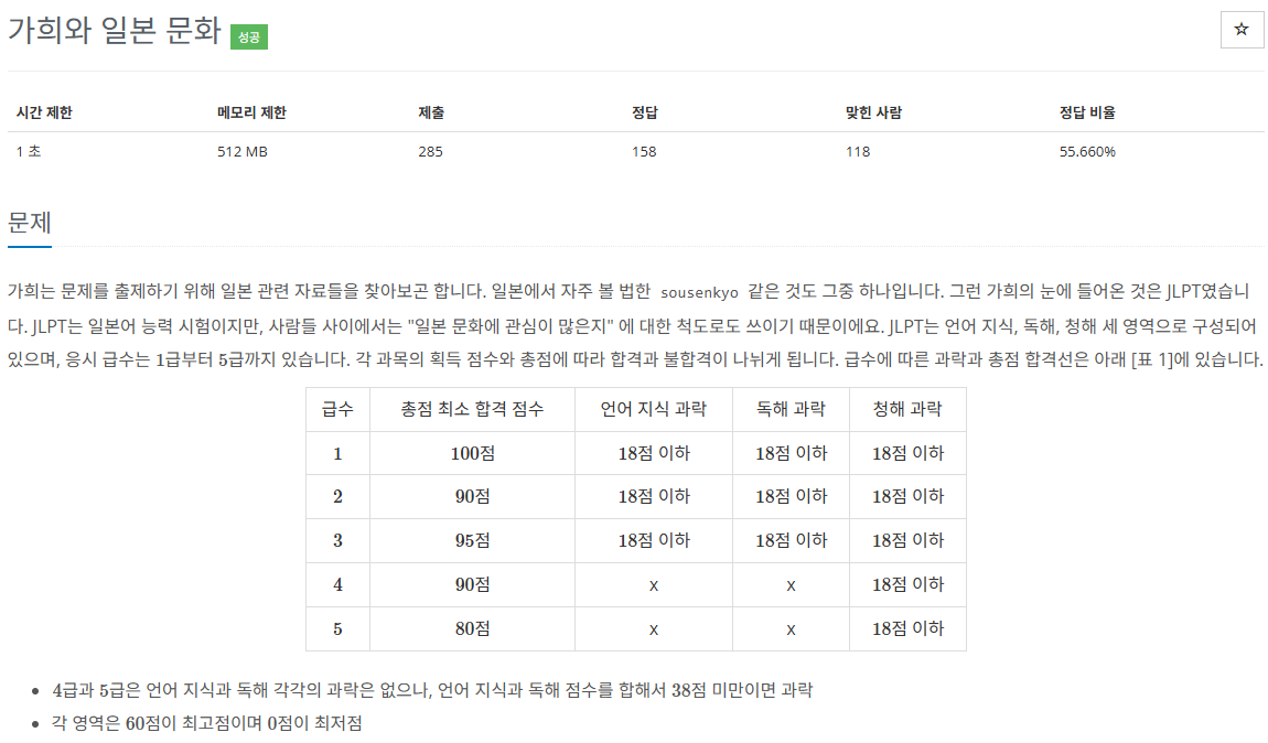 // 응시한 급수의 총점 최소 합격 점수가 더 높으면 +1