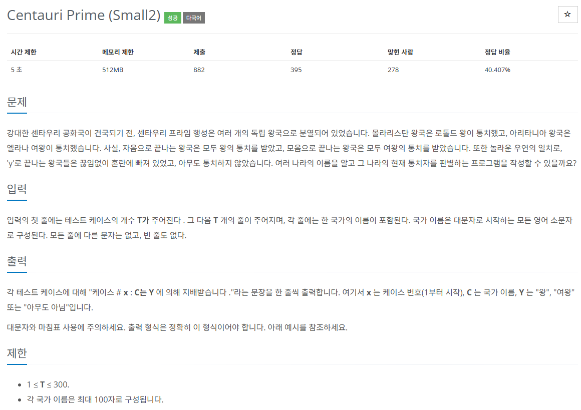System.out.println(String.format("Case #%d: %s is ruled by %s.", t, name, solution(name)));