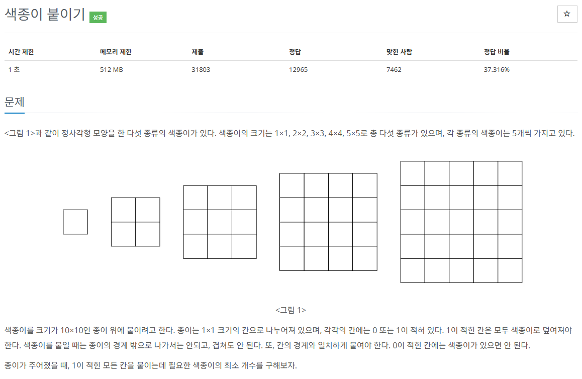 // 최소값 보다 현제 사용한 색종이 양이 많은 경우 뒤로가기 (가지치기)