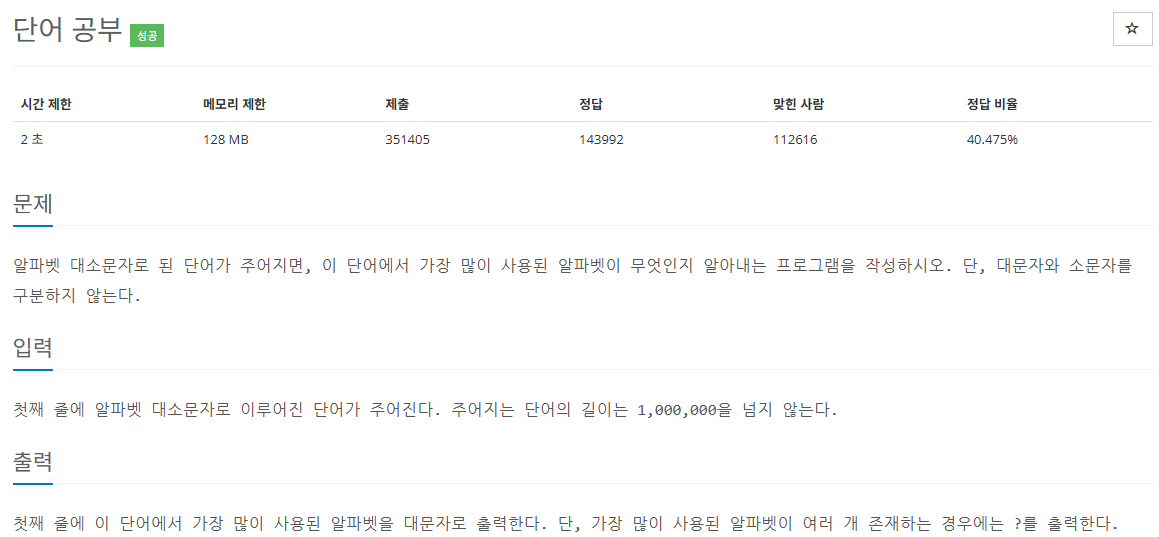 // 같은 갯수의 알파벳이 최대 갯수이면 flag false