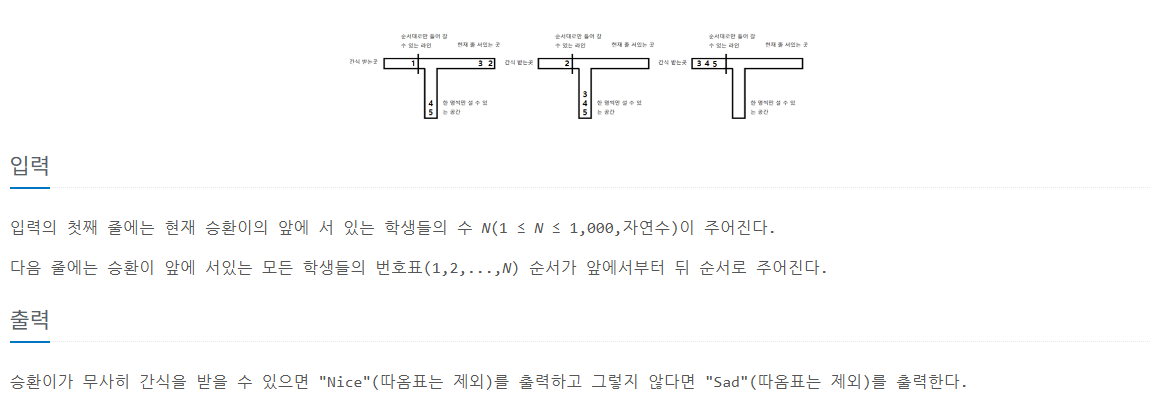 System.out.println(dq.isEmpty() ? "Nice" : "Sad");