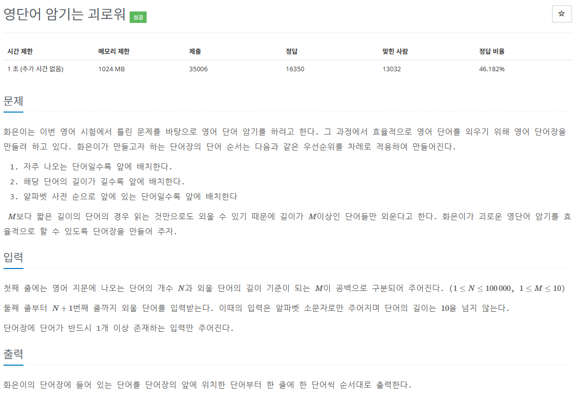 public class BOJ20920 {
