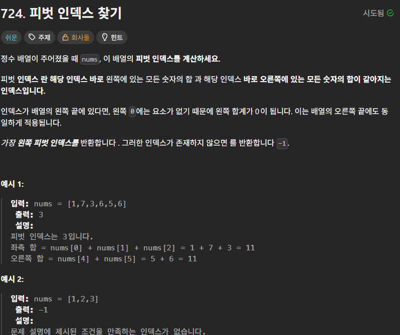 public int pivotIndex(int[] nums) {