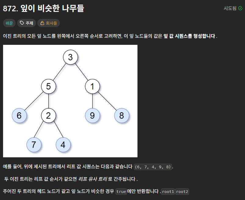 public boolean leafSimilar(TreeNode root1, TreeNode root2) {
