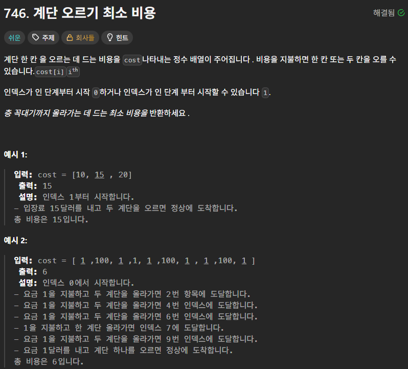 // 1번과 2번 계단은 시작점이므로 그 계단이 최소 비용