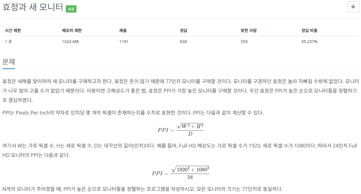 // ppi가 같으면 index 오름차순 아니면 ppi 내림차순