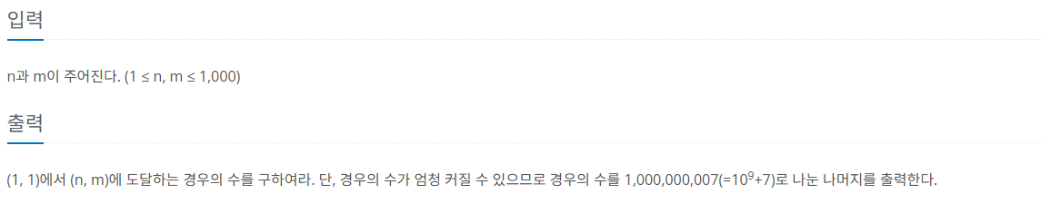 dp[row][col] = (dp[row - 1][col] + dp[row][col - 1] + dp[row - 1][col - 1]) % 1000000007;