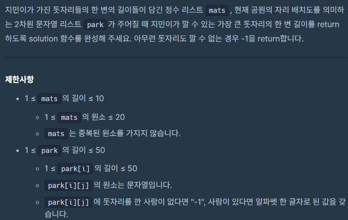 public int solution(int[] mats, String[][] park) {