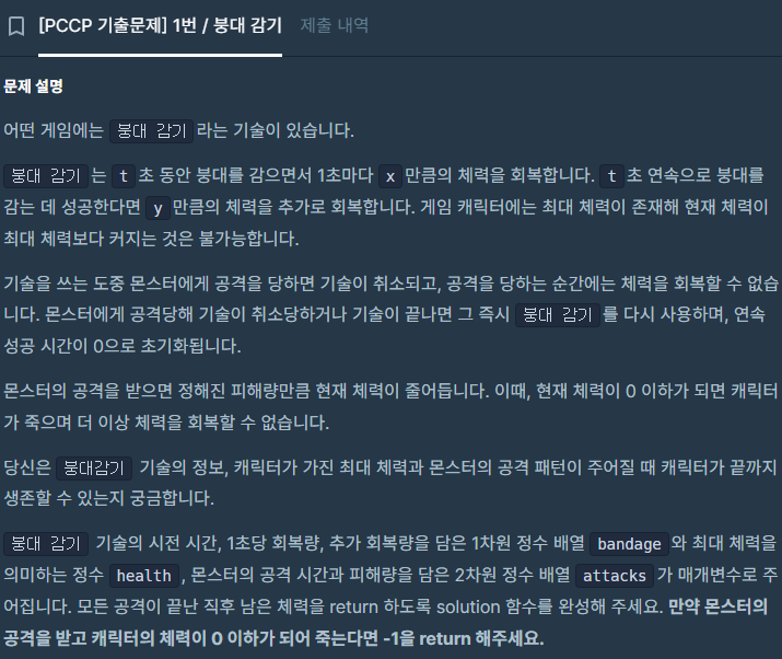 public int solution(int[] bandage, int health, int[][] attacks) {