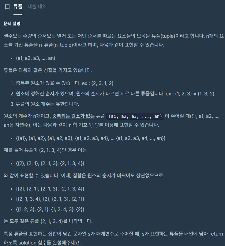 처음에 '}'가 나올 때 tuples에 저장하고 }가 아니면 저장을 하는 방식으로 하는 것은 맞았으나 이렇게 되면 2번째 튜플부터 ', '가 맨 앞에 포함이 되기 때문에 문제가 생겨서 해당 부분을 잘라내는 로직을 추가했습니다.