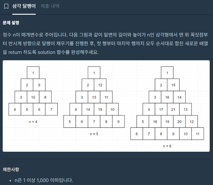 그래서 힌트 조금 찾아보니 어차피 방향 전환이 n만큼 이므로 해방 부분을 기준으로 삼고 방향 전환시마다 이동 횟수가 1씩 줄어드므로 기준만 있으면 된다라는 것을 알게되어 해결했습니다.